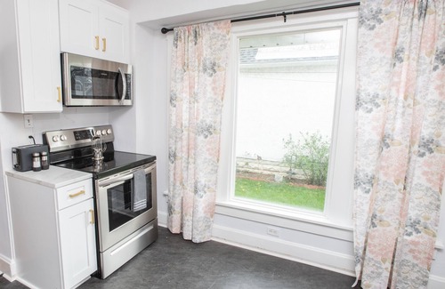 Your family will be close to everything when you stay in this cozy bungalow, decorated with a 1950's glam flair, featuring a brand-new kitchen, living room, half-bath and laundry on the main floor. The second floor features two bedrooms and a full bath. Enjoy the awesome front porch and enclosed back yard. One block off Tipp City's Main Street and a half-mile from Tipp's historic downtown shopping district. Note: we are close to a fire station, so you may hear occasional sirens.