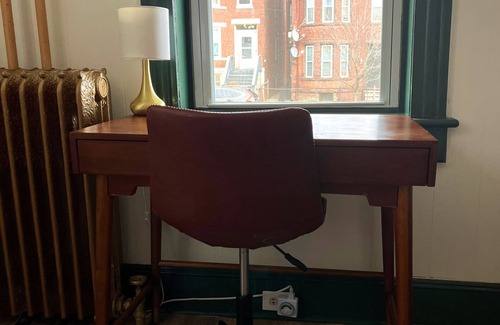 WORK FROM HOME: Fast wifi plus a desk work station in front of a large window.