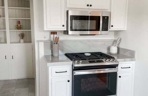 Charming one bedroom, one bathroom home. The primary bedroom includes a queen bed, spacious closet, small dresser and full length mirror. The living room is complete with a queen size sofa bed for extra guests. Enjoy the convenience of a full kitchen and laundry room. Step outside onto your private deck overlooking the vineyards, where a cozy fire pit awaits.