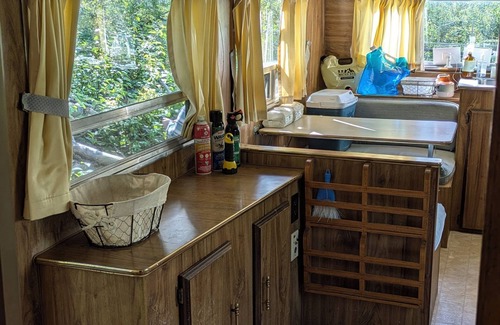 Enjoy a peaceful stay in this nostalgic '88 camper just minutes from Fort St James. The bedroom features a comfortable queen bed and the living space has a twin bed. On a no-through road close to the lake, this rustic spot is private and quiet. A gas stove, kettle, coffee and tea, hot shower and tiny bath make your stay cozy.