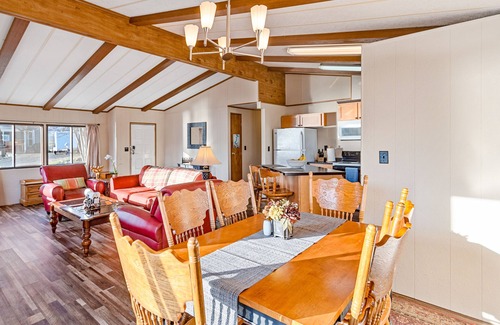 Spend your next getaway at this waterfront home where you can enjoy days of swimming and boating on Lake Coeur d'Alene, right across the street. In the evening, the deck is the ideal place for gazing at the gorgeous backdrop and taking in the beautiful view.