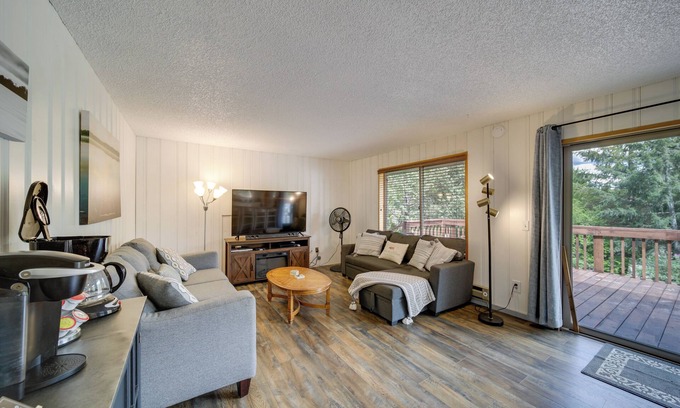 Experience a relaxing escape at Lake Coeur d'Alene at this 2-bedroom, 1-bath vacation rental! Boasting an ideal location, this property provides quick and easy access to boating, swimming, and fishing. Enjoy the community amenities like beach access, boat launch, and slip to make all the lake activities readily available! Filled with natural sunlight, the open-concept living area with a flat-screen TV, a well-equipped kitchen, and a gas stove fireplace beckon with the promise of relaxation.