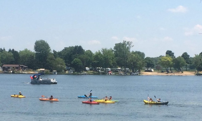 Craig Lake is 1 of 7 lakes in the "North Chain" of lakes in Branch County. All lakes in this chain are "all sports lakes" (fishing and water skiing/ tubing allowed). There are apprx. 11miles of waterway from the River Rd bridge back through the chain of lakes and channels to where the Coldwater and Sauk Rivers feed into South Lake/ Messenger Lake area. All of this waterway is navigable by power boat or kayak. The entire chain of lakes is apprx 1200acres. The fishing throughout the chain is excellent with bass, bluegill, crappie, perch and pike as the main species. There is a sandbar area boat hangout on Randall Lake (we have auger poles in our rental pontoon so you can hangout there if desired). 1 golf course and multiple restaurants are reachable by boat along the chain (Coldwater Golf Course/ Bill's Grill House/ Bill's Tap House and Pizza Parlor and Willows Bar). There is a hand dipped ice cream shop and party store across Craig Lake from our cottage (Country Cove Store) also reachable by boat or kayak.