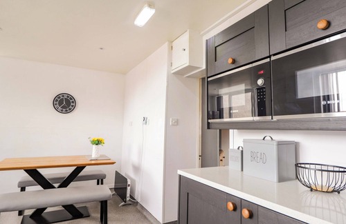 Amenities: Gas central heating. Gas oven and hob, microwave, fridge, washing machine, dishwasher. 3 x TVs, WiFi. Fuel and power inc. in rent. Bed linen and towels inc. in rent. Private parking for 6-10 cars. EV charging available. Rear garden with gravelled area, furniture, storage and hot tub. Three well-behaved pets welcome. Sorry, no smoking. Shop 0.3 miles, pub 0.2 miles, beach 0.6 miles. Note: The ceilings on the second floor are sloped in some rooms, please take care. Note: The landing on the first floor is split-level, please take care