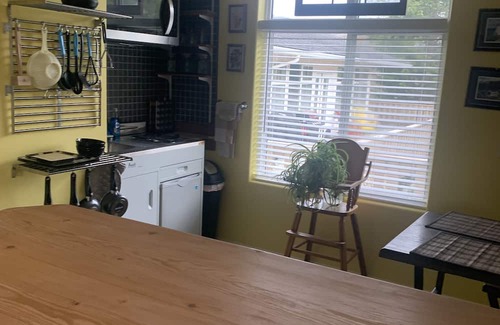 Cozy suite , bright and welcoming, 3 blocks from the ocean, close to all restaurants and shopping. Enjoy and relax , just bring your toothbrush. Private off street parking in quiet neighborhood. The kitchen is well equipped for light cooking, coffee maker, toaster... kitchenette with convection microwave, sink 2 burners and small fridge. There is a freezer available for your use and a coin-op laundry room on the property. You'll have a private entrance with patio and BBQ. The bedroom is complete with quality linens, a Queen size bed with TV. full spacious bathroom with tub & shower, towels are provided.