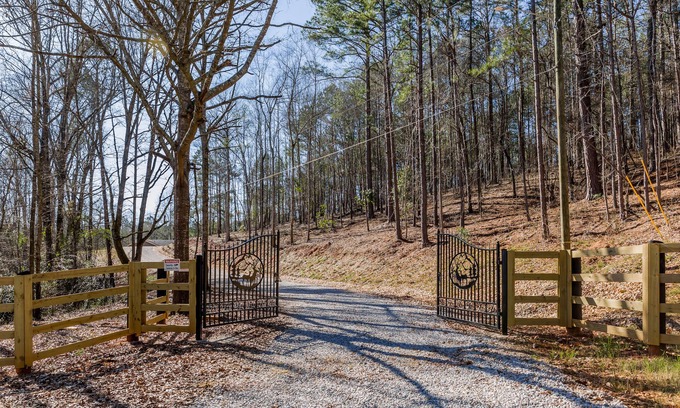 Great Location!!... 1.5 miles from center of downtown Lagrange, 1 mile from Walmart, less than a mile to boat ramp at Yellow Jacket Creek; close to Great Wolf. Easy access to I-85. Beautiful setting on a secluded 18 acres with private lake. Great location for family reunions, fisherman, traveling sports Teams, church/business retreats, small out door wedding or just a family vacation. Creek Lodge sits on a gated 18 acres of secluded wooded area that is truly a hidden gem located near downtown LaGrange. The home includes handmade farmhouse furniture with two private decks and a front and back patio that overlooks a private lake.