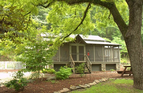 Beautiful Sugar Creek winds around the large screened porch of the Wildacre cabin, only yards away. Sleep with your windows open and let the bubbling of the creek lull you to sleep at night.