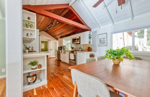 Nestled among towering redwoods, this charming cottage offers a tranquil retreat overlooking Mill Creek. Enjoy outdoor living at its finest with a spacious deck and a cozy pergola, perfect for relaxing. The separate guest house provides extra privacy, complete with its own bedroom and bath. The property features a well-equipped laundry room with modern appliances, ample parking, and a delightful outdoor area for dining and grilling. Inside, the cottage blends rustic charm with modern conveniences, including a comfortable workspace, French doors leading to the front porch, and a beautifully appointed kitchen.
