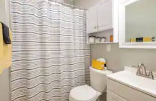 A brand new home situated in a wooded, quiet neighborhood. A creek runs through the backyard providing a tranquil space to relax. This home is located less than 2 miles from Liberty University while also being surrounded by shopping, food, and entertainment. Your daily living necessities such as washer/dryer, extra linens, hair dryer, Keurig, and kitchenware are all included. Ample off street parking, covered front porch, electric fireplace, and comfortable beds make this home a must see.