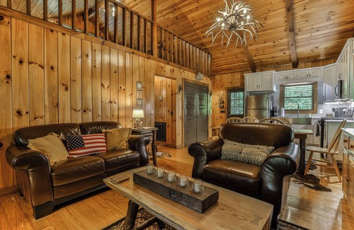 The cabin comfortably accomodates up to four guests with one Queen bedroom and a loft area furnished with a queen sized and a full bed. There is one full bath with walk in shower on the main level. The appealing decor creates an atmosphere that fits the setting and provides a unique experience for anyone lucky enough to stay.