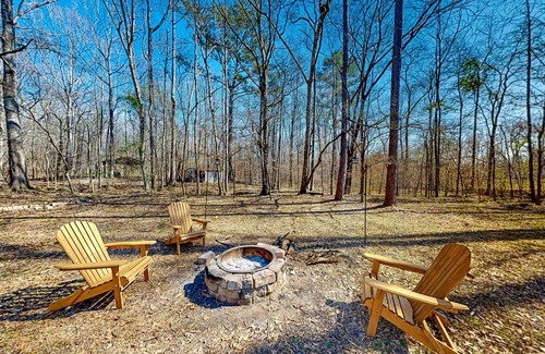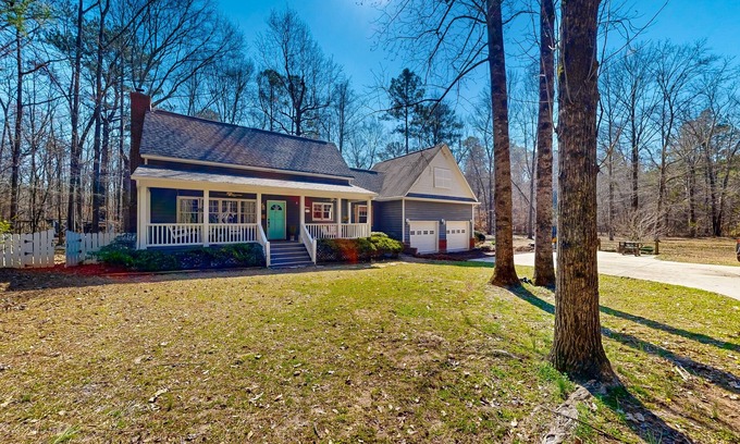 Central Georgia splendor awaits at this relaxing retreat. Conveniently situated just a short drive from downtown Forsyth, the Rum Creek Wilderness Area, and Lake Juliette, you can spend your days soaking up small-town charm or exploring the backwoods with hiking, kayaking, hunting, and fishing. A gentle creek meanders through the property, adding a dose of rustic appeal to the home. Yard games and a firepit provide plenty of opportunities for outdoor gatherings. Additional highlights include a covered front porch, a large deck, and an outdoor shower.