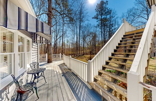 Creekside home with firepit, yard games, deck, wood stove, & W/D | House in Forsyth