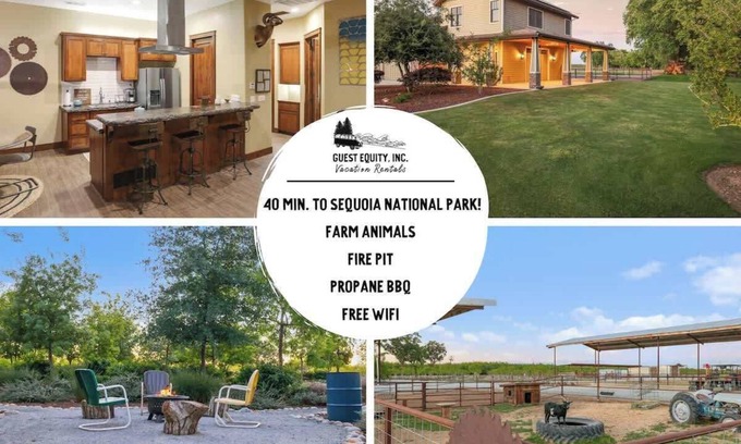Located alongside a creek in the country, this working ranch will exceed your expectations! Enjoy farm animals, mountain views, gorgeous sunsets and sun rises. Luxury living just minutes to Visalia, Exeter, and Tulare. Whether you're sipping wine around the fire, taking a stroll through the pastures, or BBQing creek side on the covered patio, staying here will be an experience you'll never forget! Visalia's best-kept secret, this hidden gem tucked away in an orchard is great for couples traveling to nearby Sequoia National Park, or just in need of a staycation. In town because you're a traveling professional? Ask us about our special rates.
