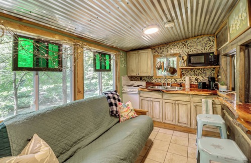 Unplug and experience true tranquility at 'The Treehouse Cabin!' Nestled in the North Georgia Mountains, this 1-bedroom, 1-bath vacation rental is ideal for a romantic couple's getaway or a quiet solo escape. Sip your coffee on the patio, cast a line in the creek, or relax by the fire and enjoy the soothing sounds of nature. Looking to venture out? James H. Floyd State Park and downtown Summerville are just 10 miles away!