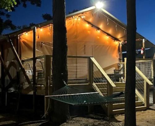 - Aquatic Retreat: Waterfront Tented Cabin with Full Amenities for Water Lovers in Cibolo, TX
