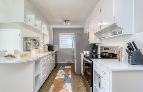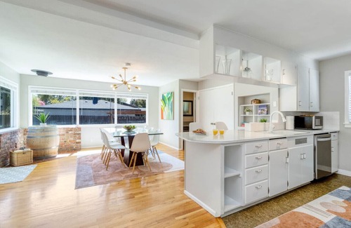 Crestview House is a light-filled Ranch-Style home on a quiet street with an easy drive to town. The large fully-fenced backyard with patio & outdoor dining are perfect for family and friends to gather. There is a well-appointed kitchen and dining room that seats 8 guests comfortably.