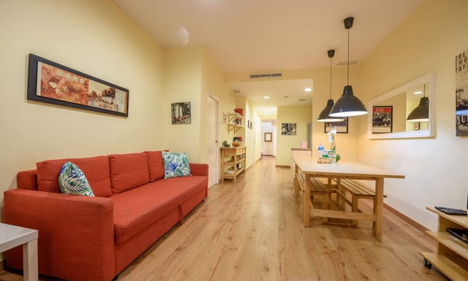 Creu - Ramblas Rentals Chic & Spacious Flat |Pool Table| 15m Ramblas is located in El Poble-sec. Creu - Ramblas Rentals Chic & Spacious Flat |Pool Table| 15m Ramblas provides accommodation, featuring Air Conditioner, Parking, Wheelchair Accessible, among other amenities. This Apartment features Air Conditioner, Parking, Wheelchair Accessible, to make your stay a comfortable one.