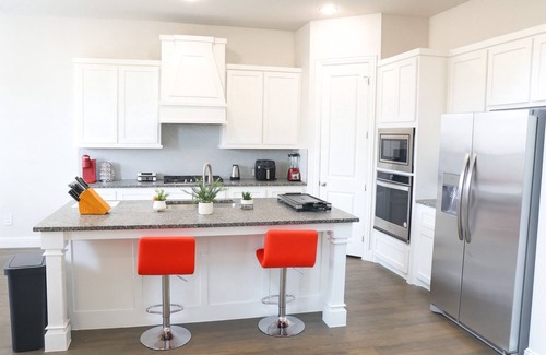 Crew comfort made easy! Save 50–80% over hotels in this spacious 5BD, 4.5BA home for up to 16. Bond after work with BBQs, relax in the hot tub, shoot pool, or enjoy the putting green. Fully fenced backyard with firepit is perfect for evenings. Game room, full kitchen, and office with standing desk keep work and play balanced. Pet friendly with crib provided. Quiet neighborhood, plenty of parking, and fully furnished with essentials for long stays. Your crew can unwind, recharge and feel at home.