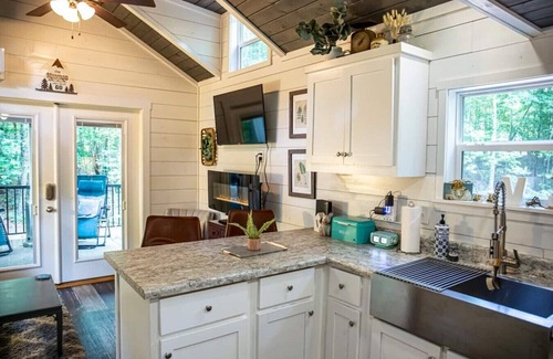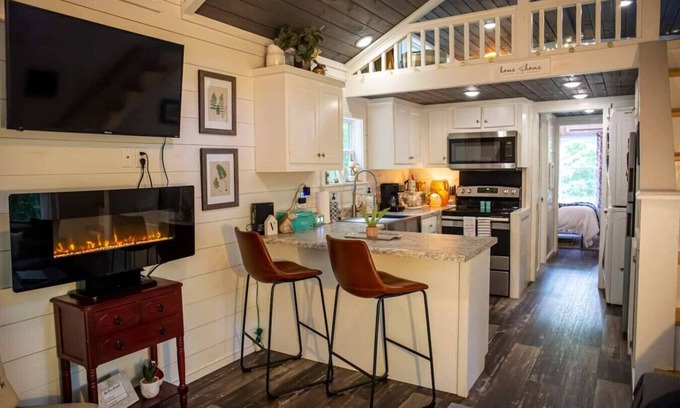 Cricket by the Creek is located within a tiny home community called Little River Escape which has many amenities for you to enjoy during your stay: pool, pool house, river and lake access, hiking trails throughout, and fire pits by the river.