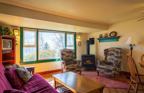 Located 80 feet from Lake Superior’s beach, Cottage #1 provides the gentle sound of breaking waves hitting the shore. There is a spectacular open view of Superior on the right with a large spruce tree on the left. Only walking paths, natural vegetation, and rocks separate you from the water. A stairway provides easy access to the 540ft of rocky beach. In front of Cottage #1 is a fire circle with comfortable seating and a charcoal grill. The front bedroom features a queen bed, a romantic gas stove, and a lakeside patio door. The living room has a decorative gas stove and a picture window looking out upon the lake. It is furnished with a plush futon, 2 wingback chairs, a smart TV with access to the internet (no broadcast TV), a DVD player, and a dinette set. The rear of the cottage has a fully equipped kitchen, a bathroom with a shower, and a bedroom with a full-size bed. This four-season cottage is open all year, decorated with a nautical theme, and has wireless internet access. An artesian well provides excellent water for drinking. Cottage #1 sleeps up to 6 people (2 on the futon) with all linens provided.