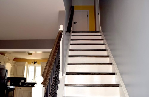 3 bedroom apartment attached to main house with your own entrance. First floor bedroom with queen bed and full bath, kitchen with refrigerator, stove,dishwasher, microwave, coffee maker, Keurig, toaster, cookware etc. Living room with sectional sofa. Laundry room with washer and dryer. Second floor. 2 bedrooms with queen beds and a full bath. Pack and play is available and also queen size air mattress. Children friendly, with yard and play ground .TV and High Speed Internet included.