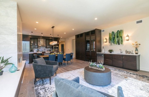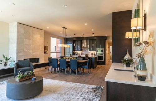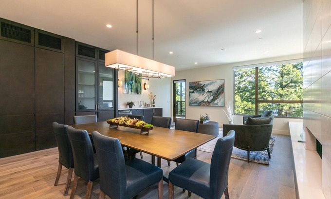 Experience refined Tahoe living in this brand-new condo, featuring modern design and meticulous attention to detail. The heated garage leads to an elevator that opens directly into the bright and airy great room, where open-concept living meets stunning forest views. Unwind in the cozy media area or prepare meals in the fully equipped chef’s kitchen with professional-grade appliances, and enjoy casual dining at the chic table.