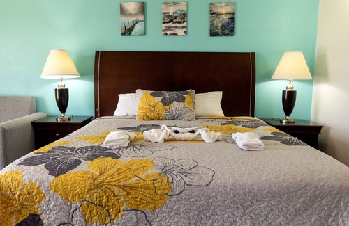 Crystal Palace Resort offers 60 air-conditioned accommodations, which are accessible via exterior corridors and feature fans and blackout drapes/curtains. Rooms open to balconies. Each accommodation is individually furnished and decorated. Memory foam beds feature down comforters. 40-inch LED televisions come with cable channels. Bathrooms include bathtubs or showers with rainfall showerheads. Housekeeping is offered once per stay and change of bedsheets can be requested. Housekeeping is provided on a limited basis.