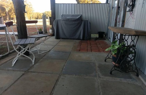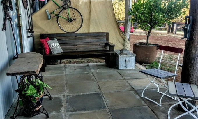 Made from recycled timber and tin, our Outcamp is designed primarily for cyclists undertaking the Mundabiddi Bike Trail which used to wind past our gate or a "rustic country get away" short stay for guests who want simplicity (there is no TV or WIFI provided) and to be out and about exploring - walking, bike riding, kayaking or visiting wineries etc during the day.