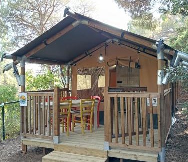 CS Glamping - Tende enjoys a location in SantʼAnna, a 7-minute walk from Ottone Beach and 6.6 miles from Villa San Martino. Cabinovia Monte Capanne is within 17 miles of the apartment. The apartment provides garden views, an outdoor pool, and free Wifi is available throughout the property. Each unit has air conditioning, a shared bathroom, and a fully equipped kitchenette including a fridge, stovetop, and kitchenware. At the apartment complex, all units are fitted with bed linen and towels. Marina di Campo Airport is 11 miles away.