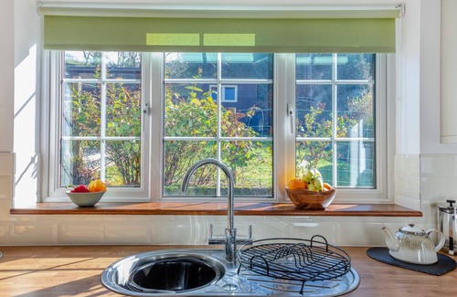 The former slate quarryman’s cottage is full of characterful period features, such as exposed beams and flagstone flooring that sit alongside contemporary furniture and elegant soft furnishings. At the heart of the home is a cosy lounge/diner, with plush sofas, ambient and well chosen lighting, artwork on the walls, and a collection of homely touches. Unwind in here after a long walk, watching a film on the Smart TV and warming your toes by the wood burner, which is set within an original slate fireplace. Tucked away in one corner is a dining table for enjoying mealtimes as a group. The separate, shaker-style kitchen boasts views across the garden to the mountains beyond and has everything needed to rustle up delicious breakfasts and hearty meals. Steep, cottage-style stairs lead to the first floor, where you’ll find two inviting bedrooms – a super-king-size (zip-and-link that can be made into twins) and a double along with a stylish family shower room.