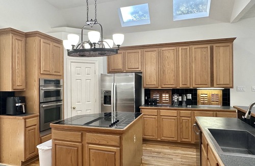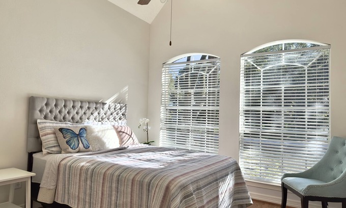 Welcome to our custom-built beautiful home in the heart of Katy near I-10 (< 0.5 mi.) & 99. Enjoy spacious rooms with high ceilings, a large formal dining area, and a living space with a see-through fireplace. The home boasts brand new appliances and premium beddings. The primary bedroom offers regal comfort, accompanied by an lavish en-suite bath. Park easily in the two-car oversized garage and relax on the massive screened-in patio. Your perfect getaway awaits!