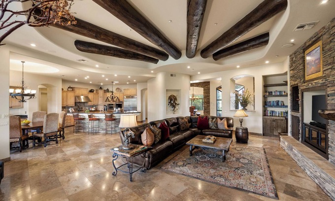 Custom Southwest Dream Home with Pickleball Court and Resort-Style Setting! has 6 Bedrooms , 5 Bathrooms, and max occupancy of 14 people. The minimum rental for this property is 1 nights, but this can change depending on the season you plan on staying. Previous guests have given good rated it, and VRBO labeled it a top-rated House because of the excellent services rendered by the owner or manager of this House, and has consistently provided great experiences for their guests. Most families or guests that use it recommend it to their friends and some of them are repeat guests. House has a friendly neighborhood, and the North Scottsdale has interesting places to visit. If you want to learn more about the House in North Scottsdale, such as places to visit and things to do nearby, you can check below to learn more.