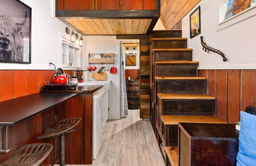 With denim and warm wood accents, and the Americana color scheme, this Tiny is loaded with down-home charm. And of course, the Barn Tiny is PET-FRIENDLY! Well-behaved dogs and cats are welcome to stay with their owners here!