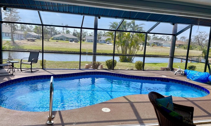 This charming 2-bedroom, 2-bathroom house is a great place to relax. Located on the fresh water canal in the Rotunda West, this stone is ideal for observing nature. Great beaches such as Englewood Beach and Boca Grande, ramps and kayaking are also nearby. The pool is ready for you to enjoy a swim, or just sit next to the water, sunbathe or just enjoy the shock tail. Conme and see how fantastic it is.