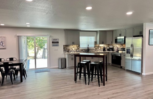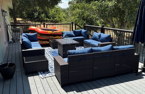 Completely remodeled home on the San Joaquin River on the way to Yosemite right in the heart of Fresno. Huge patio to hang out on, private pond, full of dishes, towels, brand new smart TVs and brand new furniture, and bedding.
