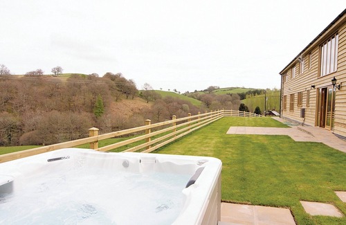 Bathroom: Bath, Cubicle Shower, Toilet. Oil central heating, electricity, bed linen, towels and Wi-Fi included. Travel cot, highchair and stairgate. Doggy extras. Additional Freeview TV and DVD player. Enclosed garden with patio and garden furniture. Hot tub. Parking. No smoking.. In a glorious rural location affording stunning panoramic views over the surrounding countryside, this converted barn offers spacious and supremely comfortable accommodation including its own blissful hot tub. Perfect for relaxing after a wonderful day exploring the charming market towns of the borderlands of England and Wales, or walking on the numerous footpaths this lovely area has to offer, Cwm Corn Barn also sits just 4 miles from Newtown. Set on the banks of the River Severn, and boasting a good selection of pubs and restaurants as well as excellent shopping, this historic market town is famous for its arts and music with museums, art galleries and theatre for visitors to enjoy. Close by, the grounds of Gregynog Hall offer year round interest including extensive woodland with waymarked walks and fine trees, rhododendrons and spring bulbs. Gardening enthusiasts and history lovers too will also delight in a visit to Powis Castle, 16 miles, a medieval fortress soaring dramatically above its world famous gardens. Now in the care of the National Trust, the castle houses a superb collection of paintings, sculpture, furniture, tapestries and treasures from India. For keen bird watchers, a trip to the town of Rhayader (20 miles) will be rewarded by the spectacular daily display of the red kite feeding station. Golf, tennis and riding are available nearby. Pub serving food, 2 miles.