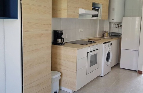 The open plan kitchen, of vitroceramic, is equipped with refrigerator, microwave, oven, freezer, washing machine, dishes/cutlery, kitchen utensils, coffee machine, toaster and juicer.