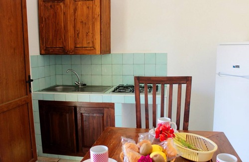 The furnishings of the apartments and of the restaurant are built entirely of antiqued wood, in the style typical of Gallura furiture.