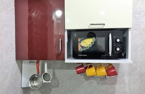 * Kitchen: The kitchen is fully functional. It is equipped with a refrigerator, Microwave Owen, Prestige Gas stove with 2 burners, Induction cooker, Kettle, Toaster, UV water purifier, crockery, cutlery etc. Essentials for morning tea/coffee is provided as complimentary. Guests can access the kitchen at any time. This is a self-service area. On request breakfast/lunch/dinner can be arranged at additional cost.