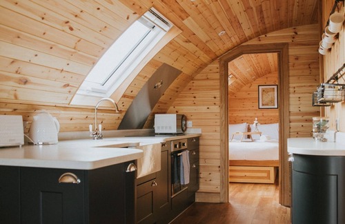 You can easily prepare a feast in the fully fitted kitchen! With oven, microwave and dishwasher set beneath an elegant marble worktop. Daisy Pod has been designed with storage solutions to keep your space clear and tidy. Relax after a day out on the two sofas and catch up with your favourite TV series. Or gaze out to see your dog snoozing or sniffing in your private fenced garden!