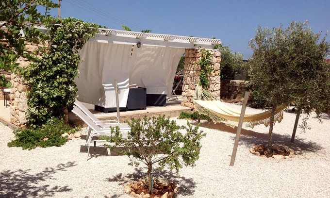 Surrounded by greenery in a quiet area called Piddu, about 1 km from the beaches of Cala Madonna, Portunt'oni, Cala Croce (characterized by white sand), 3 km from the Island of the Rabbits and 1 km from the village, stands a typical dammuso lampedusano of about 50 square meters, completely renovated, able to accommodate 2/4 people, consisting of 1 double bedroom with the addition of a single bed, 1 bathroom with shower, 1 room with sofa bed, 1 kitchenette, 1 large veranda with table chairs for pleasant outdoor evenings, barbecue, sitting area with sitting area, comfortable hammocks to enjoy the sun, laundry, garden and private parking.