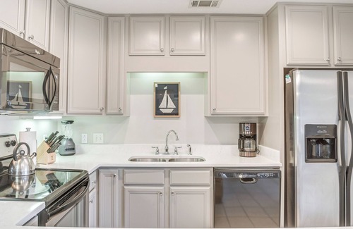 KITCHEN: Drip coffee maker (coffee not provided), blender, cooking utensils, dishware & flatware, dishwasher, microwave, toaster