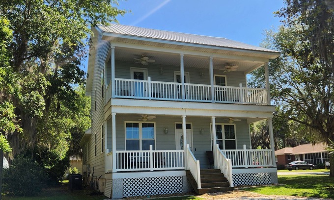 Make your next destination or layover Darien's Saltmarch Cottage. This bright and open design of newer construction features 4 bedrooms, 2.5 baths, porches for relaxing, and is within walking distance to local downtown eateries, shops, and the waterfront.