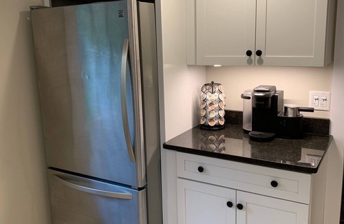 Our newly remodeled and fully equipped kitchen features granite countertops with stainless steel appliances.