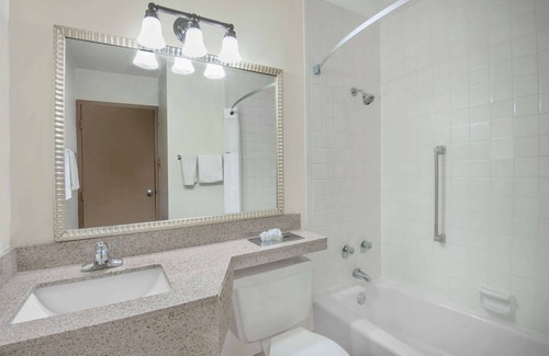 Recreational amenities at the hotel include a fitness center and a seasonal outdoor pool.
