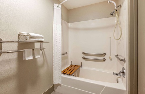 | GeneralBathtub grab bar height (inches) - 36, Number of bedrooms - 0, Wheelchair-width doorways, Square meters - 27, Grab bar - in bathtub, Doorway wheelchair width (centimeters) - 91, Square feet - 288, Shower grab bar height (inches) - 36, Ping - 8.09, Braille signage, Height-adjustable showerhead, Low-height bed, Doorway wheelchair width (inches) - 36, Shower grab bar height (centimeters) - 91, Bed count minimum 1, Number of living rooms 0, Grab bar - in shower, Low bed height (centimeters) - 43, Bathtub grab bar height (centimeters) - 91, Hand-held showerhead, Wheelchair accessible, Low bed height (inches) - 17, Accessible bathtub, Portable bathtub seat, Lowered peephole/view port in door, Portable shower seat, Bed count maximum 1 |