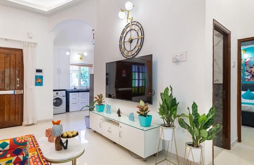 Welcome to AlohaGoa! A stunning 2BHK villa lovingly built with high beamed ceilings, pop art décor and well-equipped kitchen