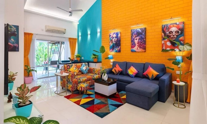 DAZZLE BY ALOHAGOA! Stunning 2BHK GF Villa with pop art décor, 2 Porches | Villa in Anjuna