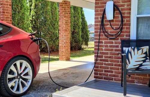 Electric car charging station on site