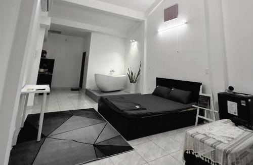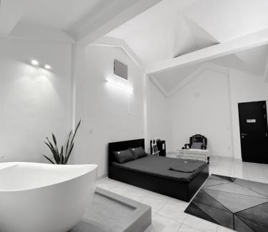 BathroomShower, Bathtub, Hairdryer, Spa tub, Free toiletries, Toilet, Private Bathroom, TowelsGeneralAir conditioningKitchenKitchenette, Refrigerator, Kitchen, Electric kettle, Kitchenware, Stovetop, Dining tableMedia & TechnologyFlat-screen TVBedroomWardrobe or closet, LinensRoom AmenitiesClothes rack |